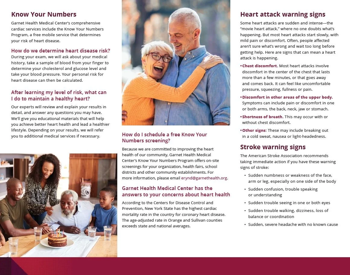 Garnet Health will provide on-site cholesterol and glucose testing, blood pressure screenings, education, and follow-up to the community. Stop in and 'Know Your Numbers'.